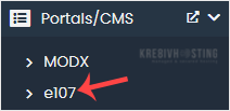 4. On the left side, locate the Portal/CMS category. Click on it and then on the e107 link that appears.